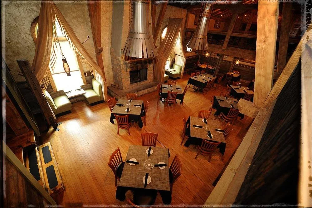 The bar features a walk-in fireplace built from stones displaced during construction of the Ohio Canal, along with two arches salvaged from the former School House #6. The dining room is framed by hand-carved chestnut beams crafted in the 1930s from trees that originally stood on the property. Hand-blown glass light fixtures and our signature copper-top bar round out the space.